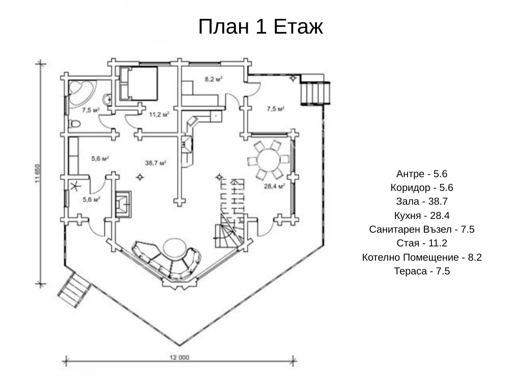 Проектът „Аполлон“ е дървена къща, която впечатлява със съвършена красота — с остри покриви, големи прозорци и оригинален дизайн. Този ефектен дом от греда е създаден да радва и вдъхновява голямо и сплотено семейство за много години. Размерите му — 11,6 × 12 м — са доста внушителни, затова е необходим просторен парцел, подходящ за красива градинска композиция, която отговаря на самия характер на къщата.