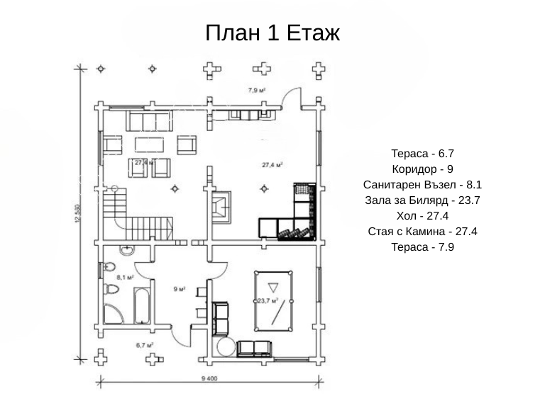 Проектът „Боярин“ се отличава със своето монументално външно излъчване и почти съвършена вътрешна планировка, идеална за постоянно живеене. Благородният и величествен външен вид създава образ на безупречен вкус у собствениците. Проектът е разработен с уважение към традициите и насоките за комфортен и активен начин на живот. На първия етаж са предвидени два просторни салона и помещение за билярд — това ви дава възможност да събирате гости в дома си и да осигурите удобство за всеки. Всеки посетител може да се забавлява, било чрез игра на билярд, било чрез разговор край камината. „Вторият светъл обем“ в къщата придава усещане за лекота и непринуденост на престоя.