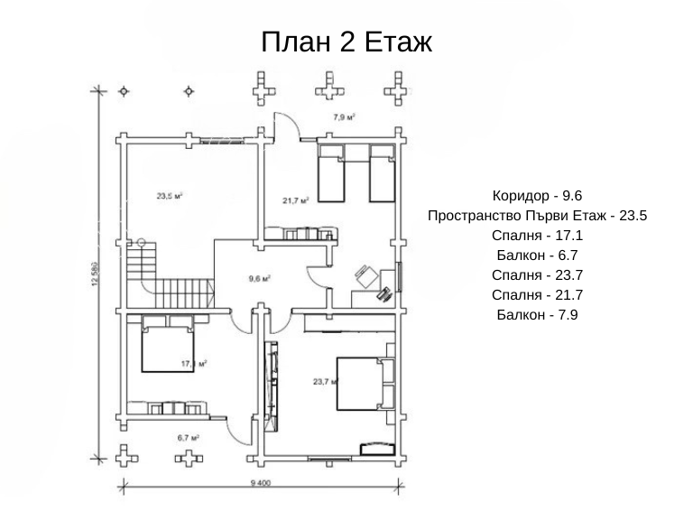 На втория етаж атмосферата става по-спокойна, защото тук се намират само спални. Два балкона дават възможност да се наслаждавате на сутрешното кафе сред свежия въздух и да усетите още повече чар и привлекателност в дома.