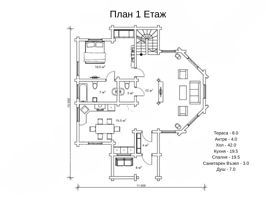 Представяме ви проекта на уютна и функционална дървена къща от цилиндровани трупи – „Говард“. Това е двуетажна жилищна постройка, създадена с мисъл за комфорта на голямо семейство и за целогодишно обитаване. Планировката включва всички необходими помещения, които правят ежедневието удобно и практично.