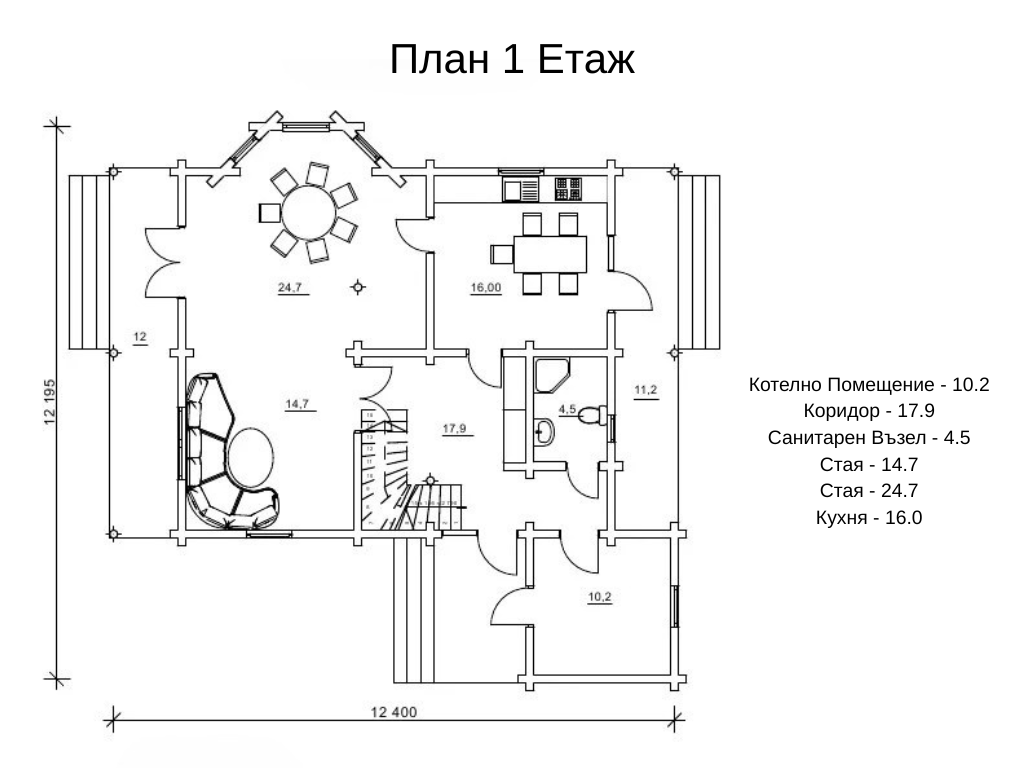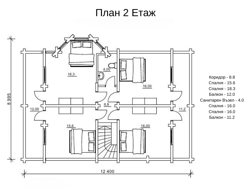 Проект на дървена къща „Гора“ – 12 x 12,4 м, завършена до ключ