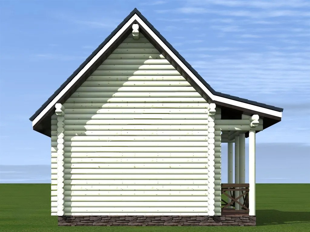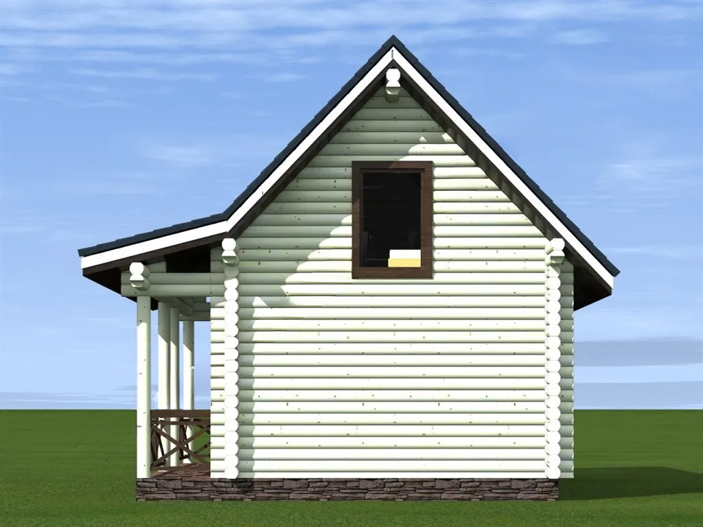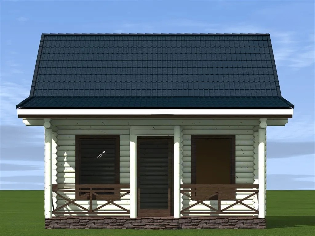 Ако бъде изграден от цилиндрични трупи с диаметър 200–220 мм или като конструкция от двоен дървен материал с изолация, домът може лесно да се превърне в топло и комфортно жилище за целогодишно обитаване.