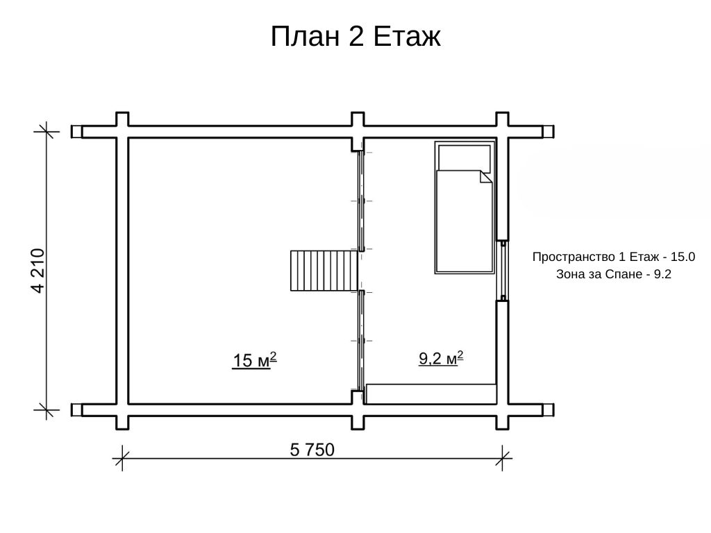 На мансардния етаж има уютно спално пространство с площ 9,2 м², достъпно дори с приставна стълба — чудесно местенце, което особено ще се хареса на децата. Целият дом напомня на приказна къщичка с фантастична форма, която би се вписала дори в най-малкия двор и ще се превърне в истинска украса на имота.