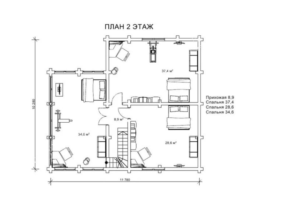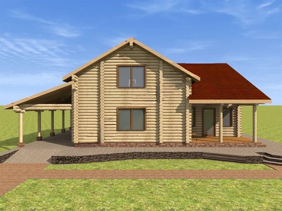 На втория етаж са разположени три уютни спални и антре. Около къщата има голям навес, който покрива част от терасата – идеално място за паркиране на автомобил или за създаване на приятен сенчест кът за почивка на открито.
