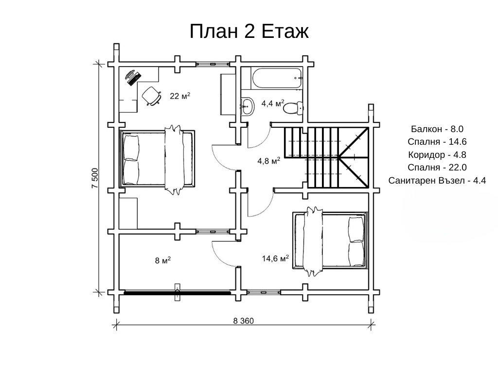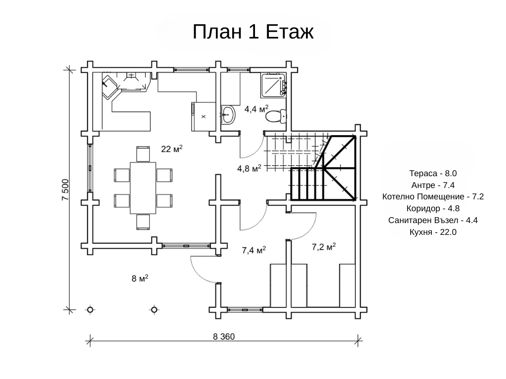 Планировка на дървена къща „Ноема“ – 7,5 × 8,3 м