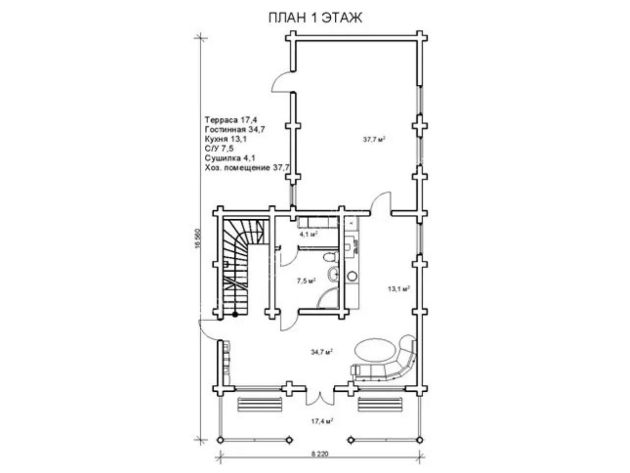 На първия етаж се намират всекидневна, кухня и санитарен възел, както и отделно помещение за сушилня – практично и функционално решение, особено оценявано от домакините. Широката тераса е идеално място за следобедни разговори и вечерен чай на открито.