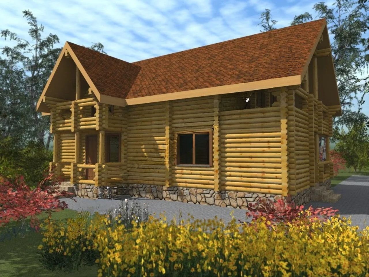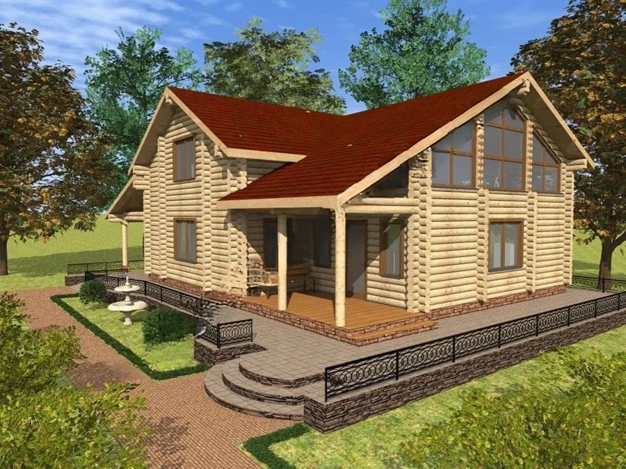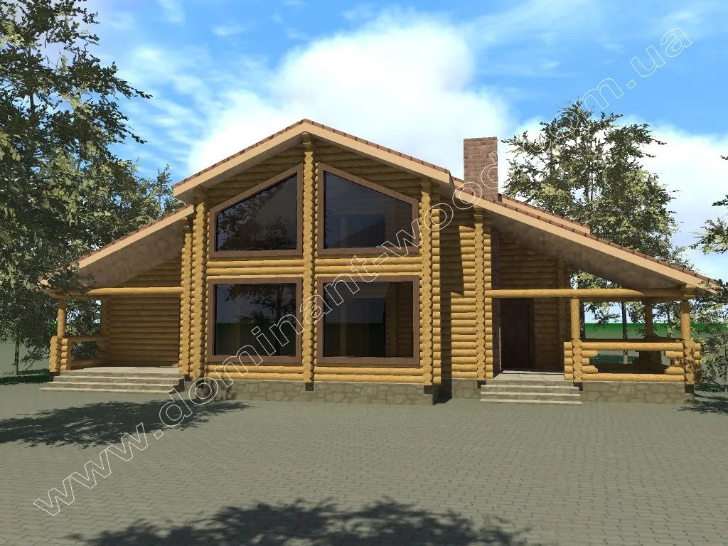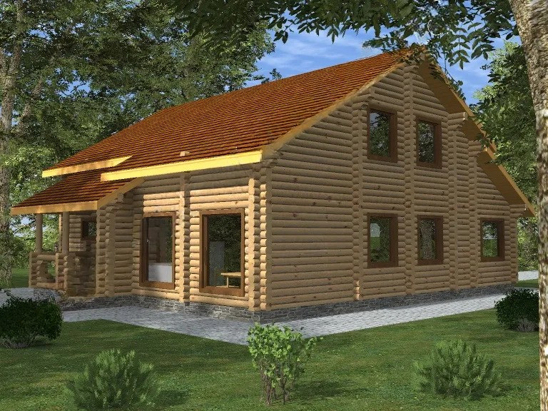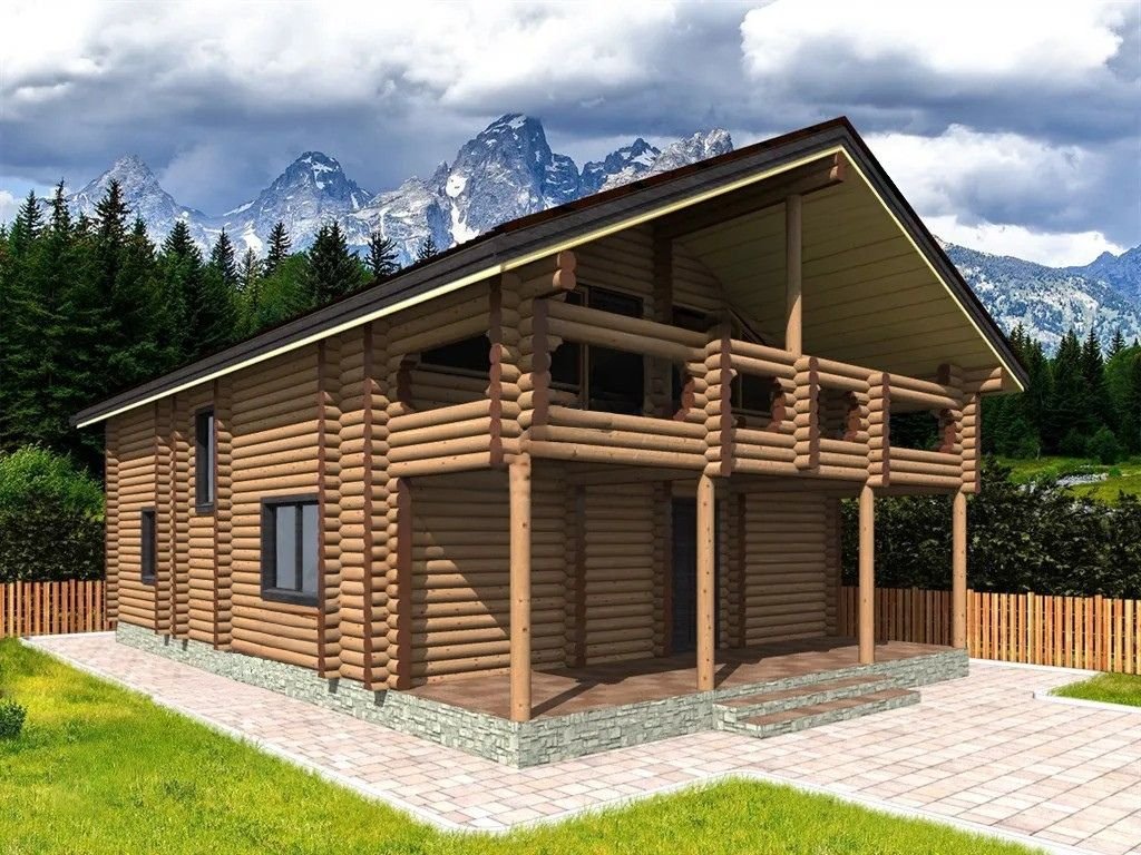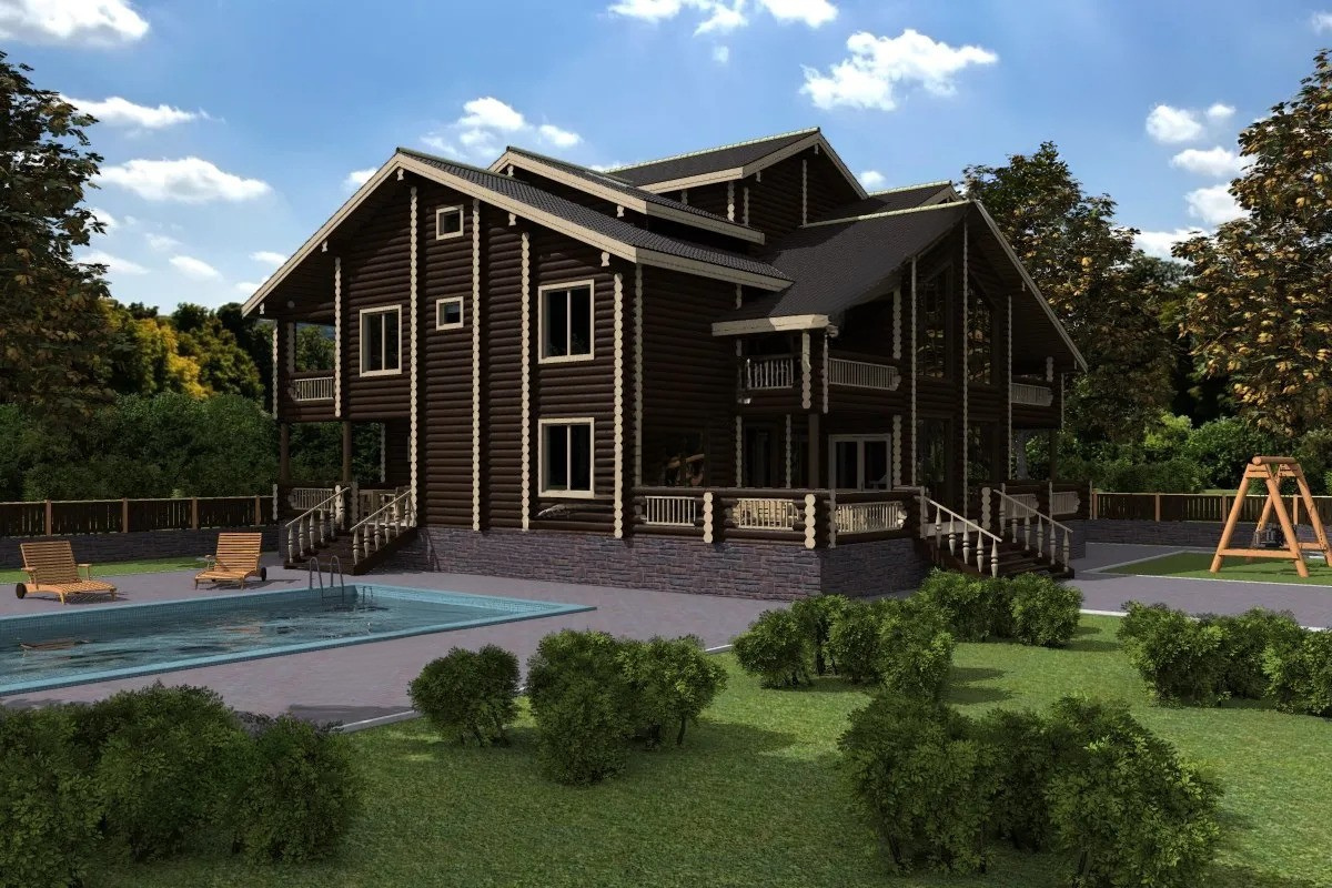 Проект на триетажна резиденция от цилиндрован дървен материал...