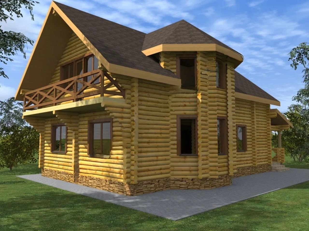 Проект на триетажна резиденция от цилиндрован дървен материал...